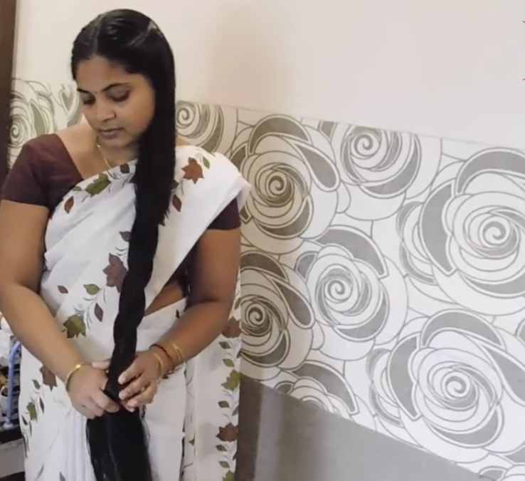 Everything was so sensual, she was in her usual light coloured saree wearing a redcoloured blouse. Mom always looked so good in saree, it truly shows off all her body curves. As she had Vicky when she was just 18 years, Mom was in her late thirties now and her body looked even younger. The silky long braid passing over her sweet round bottoms and the open end of the braid reaching her knees looked so good against the light colour of her saree. I was sure if I continued touching myself looking at her hair, I would surely climax then and there. Vicky won’t be back from school for at least 4 hours and I didn’t want our fun to end fast. I want to know the feeling of mom’s silky hair in my hands. I closed my books, checked my trousers for any wet patches and went near her.